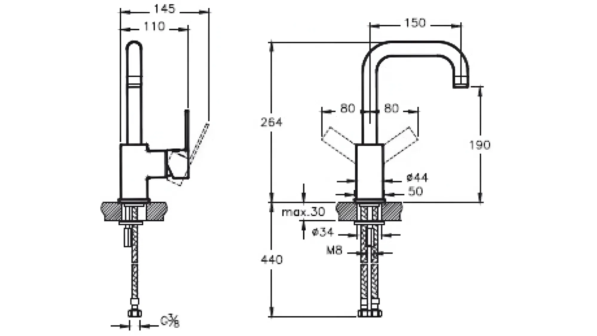 - Montaj: Maksimum 30 mm kalınlık için uyumlu